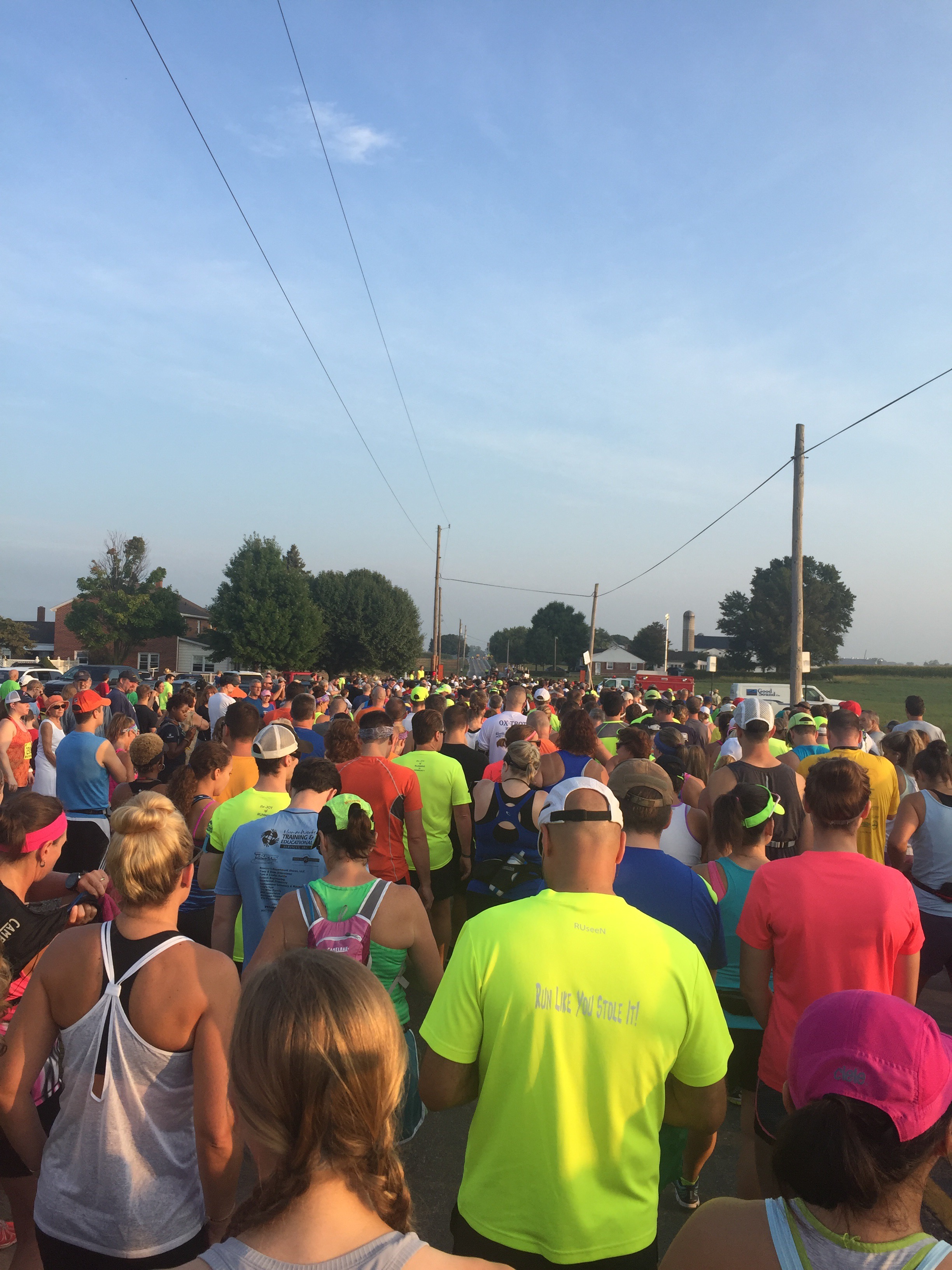 In 2015 I said I might be back for this race, and sure enough, I did return. Overall the race was the same except for a couple differences. One is that the course changed slightly from last year so that now the runners run through an Amish farm! That happens towards the end of the race, and that was very cool. The other key difference was the weather. Last year it was hot – this year is hot and very humid.